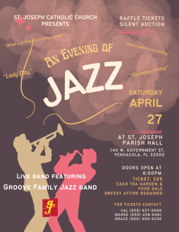 Saturday night, April 27, enjoy An Evening of Jazz at Historic St. Joseph Catholic Church in downtown Pensacola at 140 W. Govt. St. 32502.