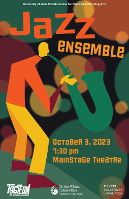 Join the UWF Combo and UWF Jazz Ensemble with special guest vocalist Sara Schoch for an evening of small and large ensemble instrumental and vocal jazz at the University of West Florida. The Combo will present works by Rodgers & Hammerstein, Miles Davis, Antonio Carlos Jobim, Duke Ellington and more. The Jazz Ensemble will present the music of Frank Meacham, Andrew Neu, Joe Henderson, Paul Baker and more. Guest artist Sara Schoch, UWF Assistant Professor of Musical Theatre and Acting, joins the big band to sing “Orange Colored Sky” and “That Old Black Magic.” The combo and jazz ensemble are under the direction of Dr. Joseph T. Spaniola. The concert is free and open to the public.