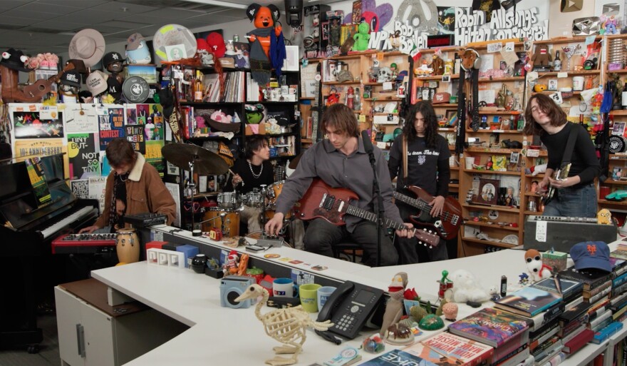When Geese stopped by the NPR Music office in December, bassist Dominic DiGesu geeked out with a bag of trinkets to display on the Desk: a small, toy goose gifted to them on tour, a stuffed Snoopy, a figurine of Sonic cradling Jesus, Minecraft sticky notes and a Mets hat. Since the release of 2025's Getting Killed, the critical and fan reception has been wild and hard to parse — even my colleagues at All Songs Considered dove into the phenomenon. But here, the members of Geese ignore the noise and lean into their decade of collaboration together.