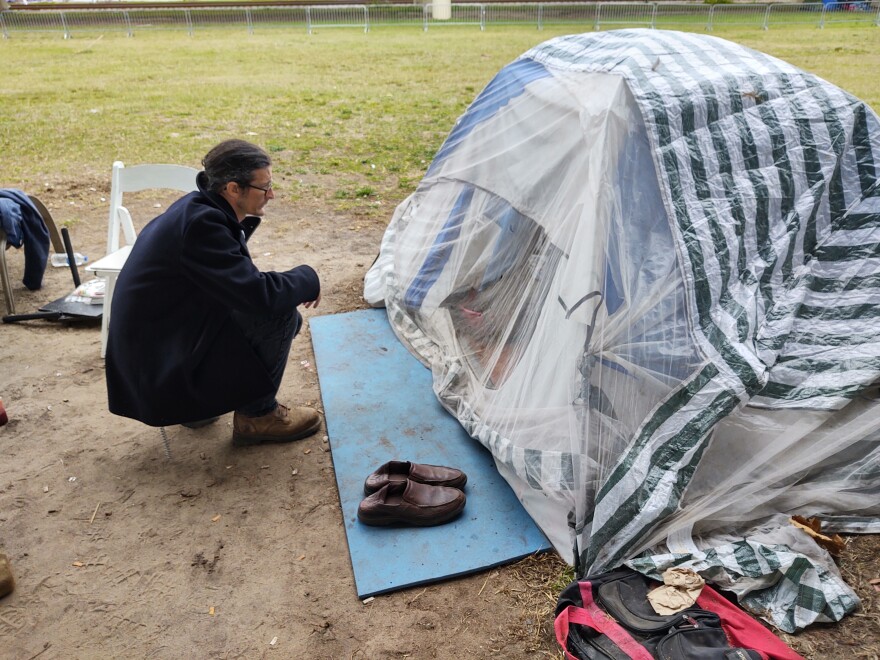 On this day, about a week after city code enforcement gave notice to vacate, the number of campers here had reduced by about half of the 30 or so that had pitched their tents. Some left immediately.
